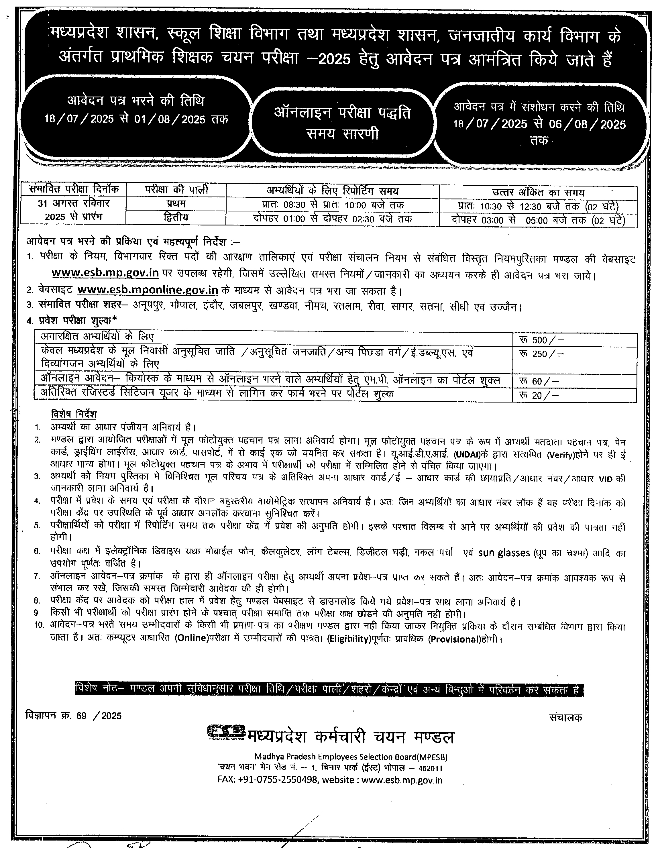 मध्य प्रदेश कर्मचारी चयन मंडल के logo के संबंध में आम सूचना | Click Here |