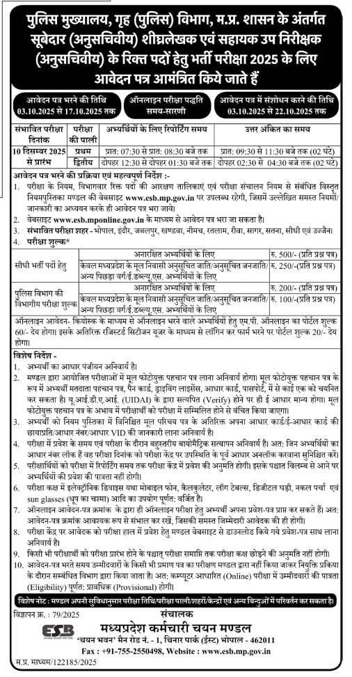 एस. बी.की वेबसाइट सूचना का प्रसार के लिए ही प्रदान की जा रही है । म. प्र. ई.
