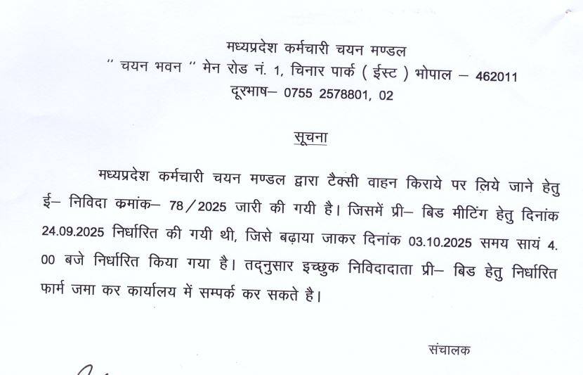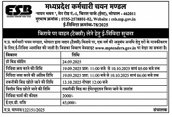 E-Tender "Empanelment to provide Security Ancillary services during multiple CBT mode examination being conducted by Madhya Pradesh Employees Selection Board throughout the state" Notice No. 26/2024 | Click Here |
