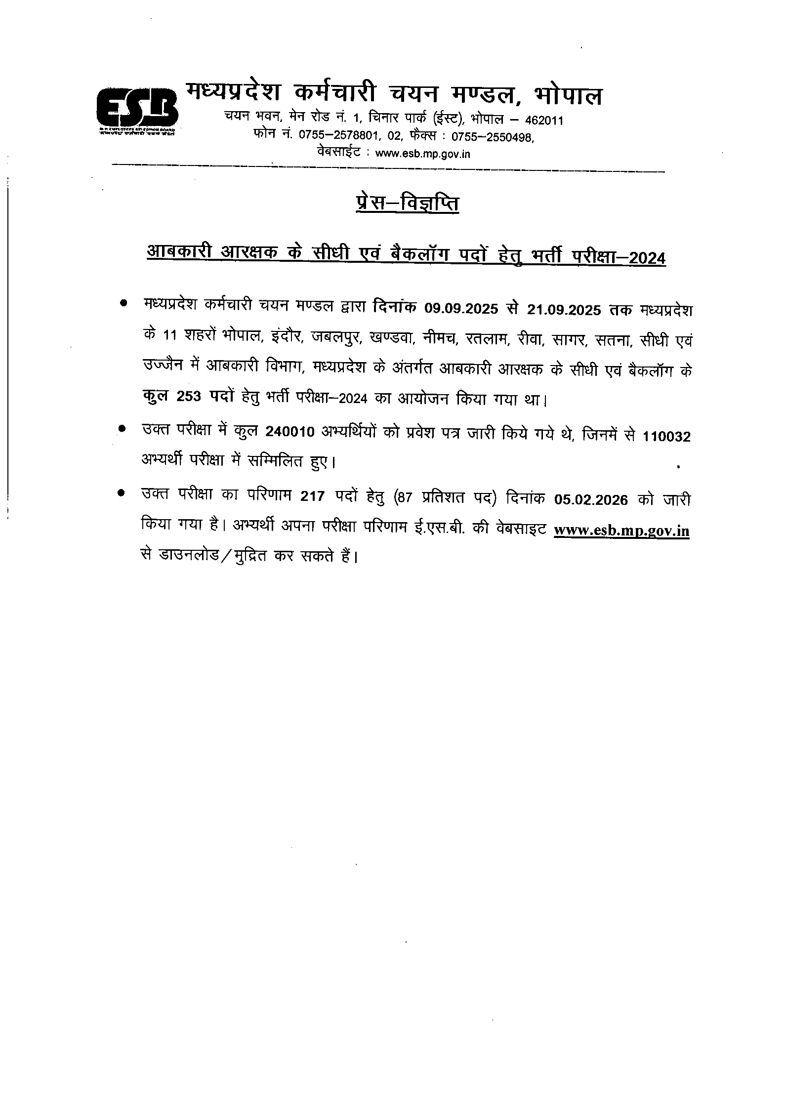 | S.No. | Name of Exam | Hosted Date/Time | Result Note | Important Update / Notice |